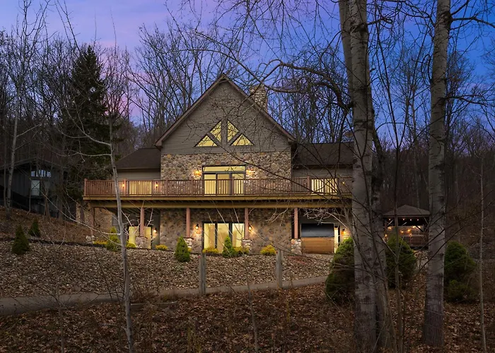 ⛷️ Stunning 8 Bed Mountain Chalet | Steps From Holiday Valley | Hot Tub, Sauna, Theatre & Bar Ellicottville est situé à environ 7 km d'Ellicottville Historical Museum et vous invite à profiter d'une terrasse. Cette villa d'Ellicottville offre à ses clients une expérience relaxante avec un jacuzzi et un sauna.